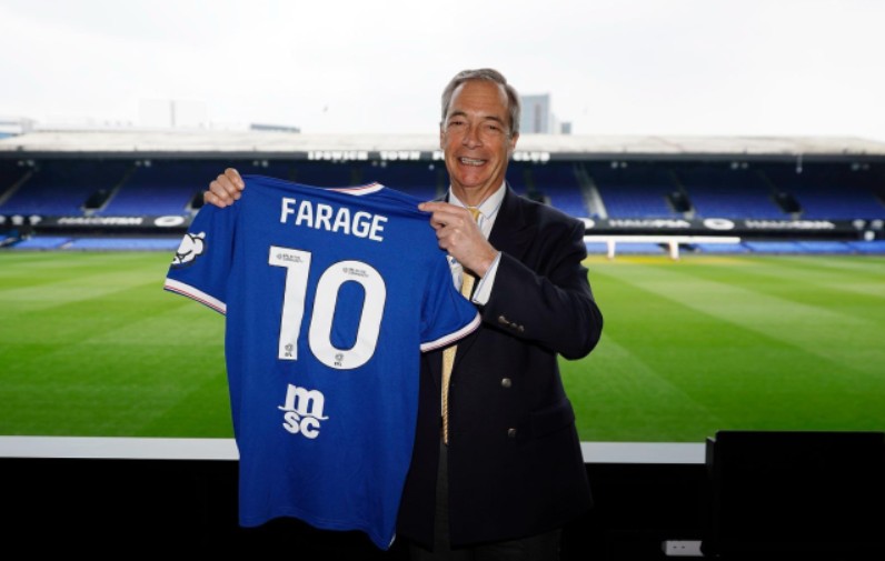 Farage visited the Championship club on Monday, and photos of the Reform UK leader holding up an Ipswich shirt with the number 10 and his own name on the back were used by the political party on social media.